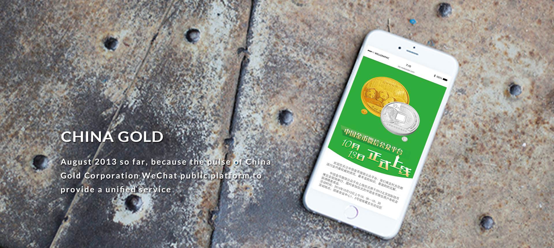 2013年8月至今,因脉为中国金币总公司微信公众平台提供统一服务,基于公众平台的服务包括后台功能开发、每日微刊推送、自动回复逻辑搭建、信息架构和产品架构的梳理录入、微活动线上线下支持、基于后台数据的周报月报等,主要服务内容:微信账号绑定与申请、微信内容维护、每天一条信息推送,定期活动组织、统计信息周报月报发送、微网站开发,帮助中国金币从开始的0粉丝到过万粉丝的健康增长。