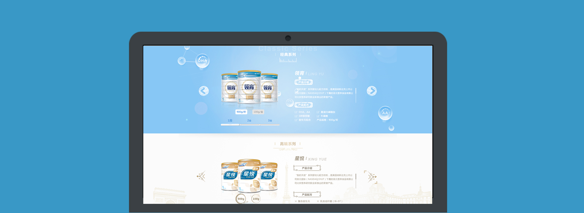 我的天使事业部:结合圣元我的天使事业部各品类产品的特性进行设计,充分展现各品类针对各年临段的特性,设计风格简单,清新,使用户浏览起来更加的舒畅。